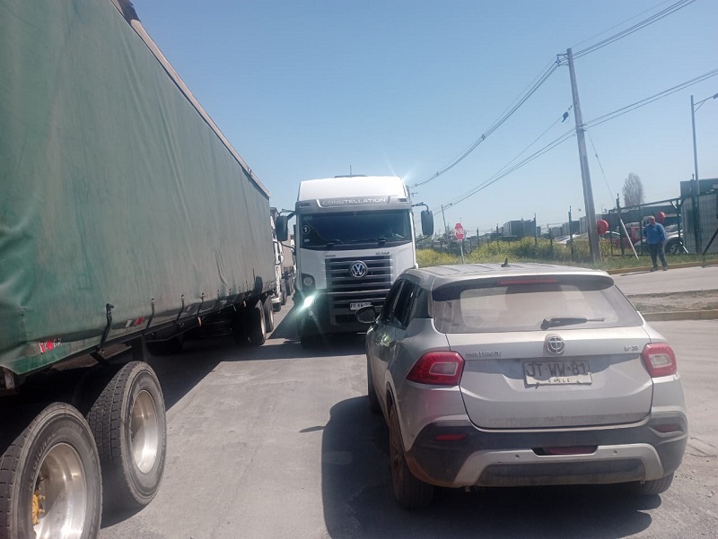 SAN BERNARDO.- Los vecinos de La Estancilla de Nos, que ya lidian con el pago obligado de TAG para salir de sus casas, ahora enfrentan serias dificultades de tránsito debido al estacionamiento irregular de los camiones que llegan a descargar al Terminal de Contenedores Geslog.