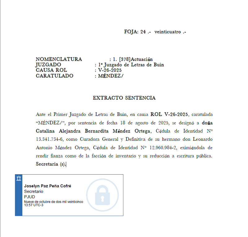 “MÉNDEZ/”, por sentencia de fecha 18 de agosto de 2025, se designó a doña