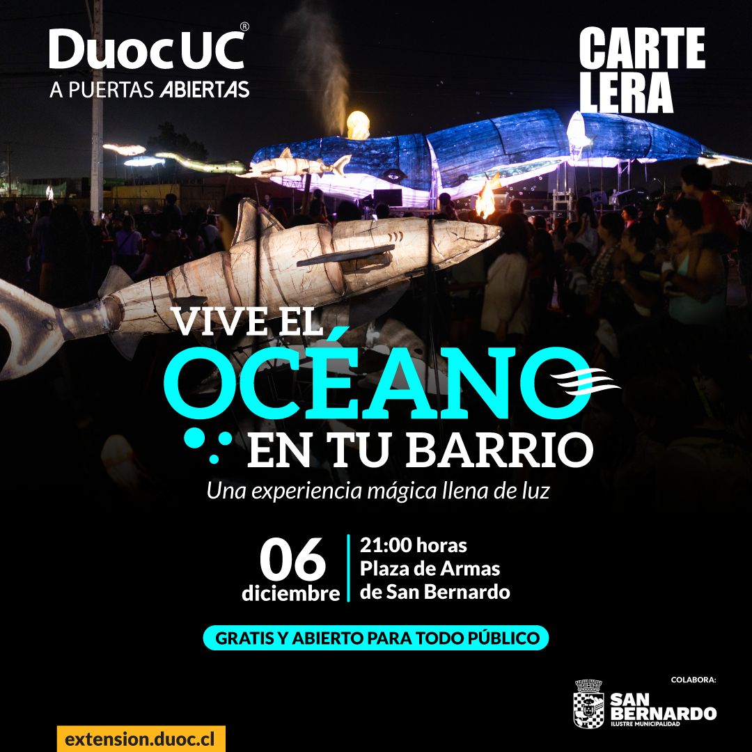SAN BERNARDO.- Este sábado 6 de diciembre, a partir de las 21 horas, el centro de la comuna vivirá una jornada llena de color y creatividad con el estreno de “Océano”, un pasacalle familiar de gran formato que promete sorprender a grandes y chicos.
