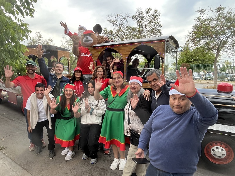 En una “locomotora” muy bien dispuesta, animador, duendes y Viejito Pascuero salieron de la “estación” García de la Huerta (costado Jumbo) para recorrer las unidades vecinales 58 Norte, San José de Nos, Robert Kennedy, Villa Esmeralda, Barrio Estación, Santa Filomena de Nos, Barrio Nuevo, Barrio Santa Filomena de Nos, San León, Los Prados y Cerrillo de Nos.