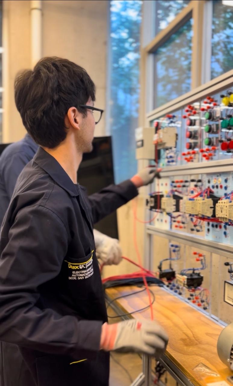 Patrick González, director de carreras de la Escuela de Ingeniería, Medio Ambiente y Recursos Naturales (área electricidad y automatización Industrial) nos comenta que, “desde el primer semestre, los estudiantes entran a talleres prácticos -conociendo en primera persona el quehacer de la carrera- con asignaturas como electrotecnia, dibujo de planos a través de programas computacionales asistidos, herramientas digitales para la comunicación, seguridad ocupacional y física aplicada”.