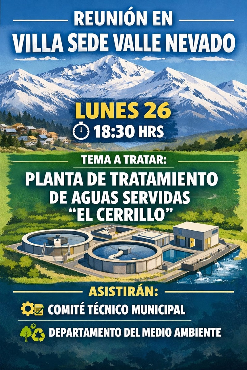 SAN BERNARDO.- La comunidad de El Cerrillo de Nos (sector Valle Nevado – cancha San Jorge) está en pie de guerra por el proyecto que busca construir una “Planta de Tratamiento de Aguas Servidas” y que, según sus bases, ocupará tecnología de lodos activos en modalidad de aireación extendida, incorporando digestión de lodos aireados y posterior deshidratado mecánico, para luego descargar el tratado efluente al Río Maipo.