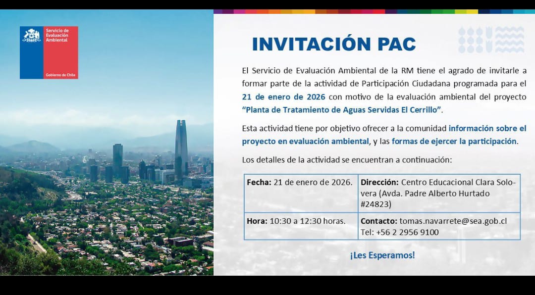 Hoy el proyecto, que lidera Aguas Santiago Norte S.A, está en el proceso de participación ciudadana y que se extenderá hasta este viernes 30 de enero. Y en este marco, la semana pasada el Servicio de Evaluación Ambiental de la RM realizó una reunión con la comunidad en el Centro Educacional “Clara Solovera”, donde se entregó información del proyecto en evaluación ambiental y las formas de ejercer esta participación ciudadana.